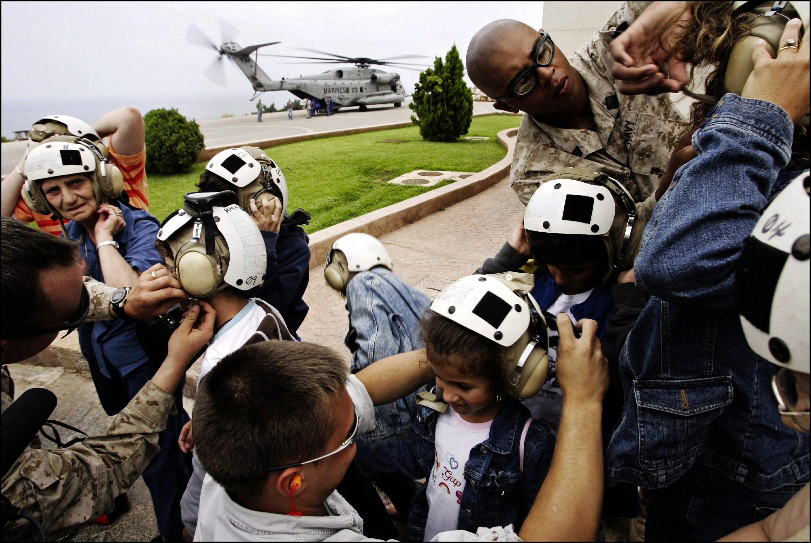 At the US embassy of Beirut, American citizens are evacuated to Cyprus by an helicopter of the US Marine corps.