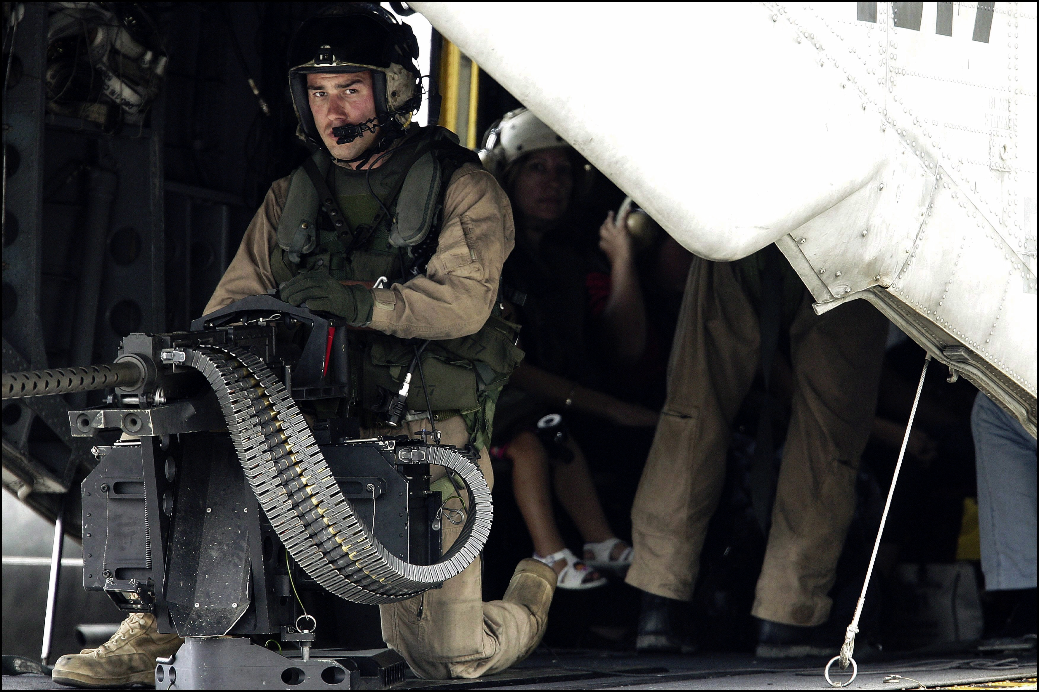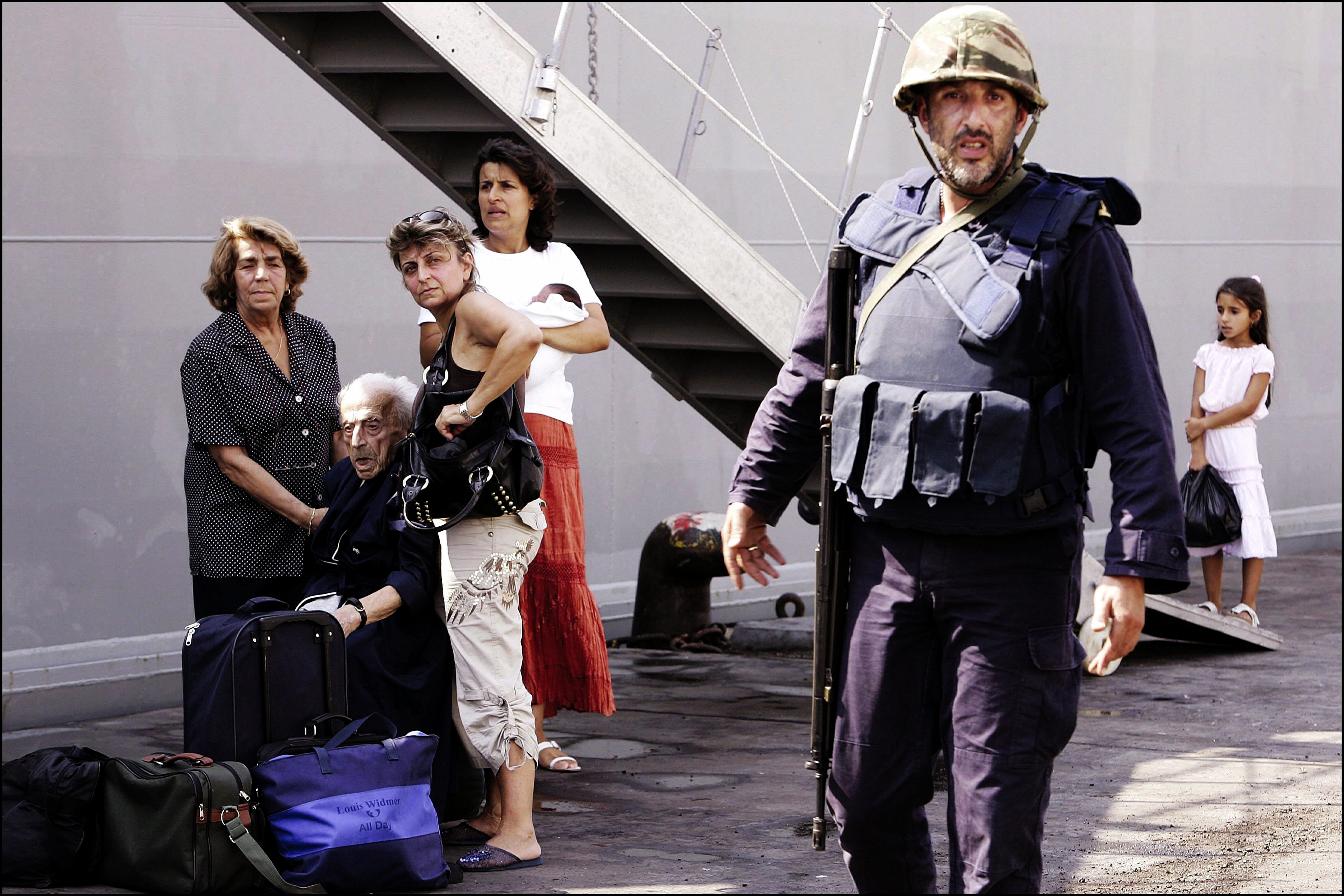 Federal agent on duty at Beirut harbor for the evacution of US citizens.