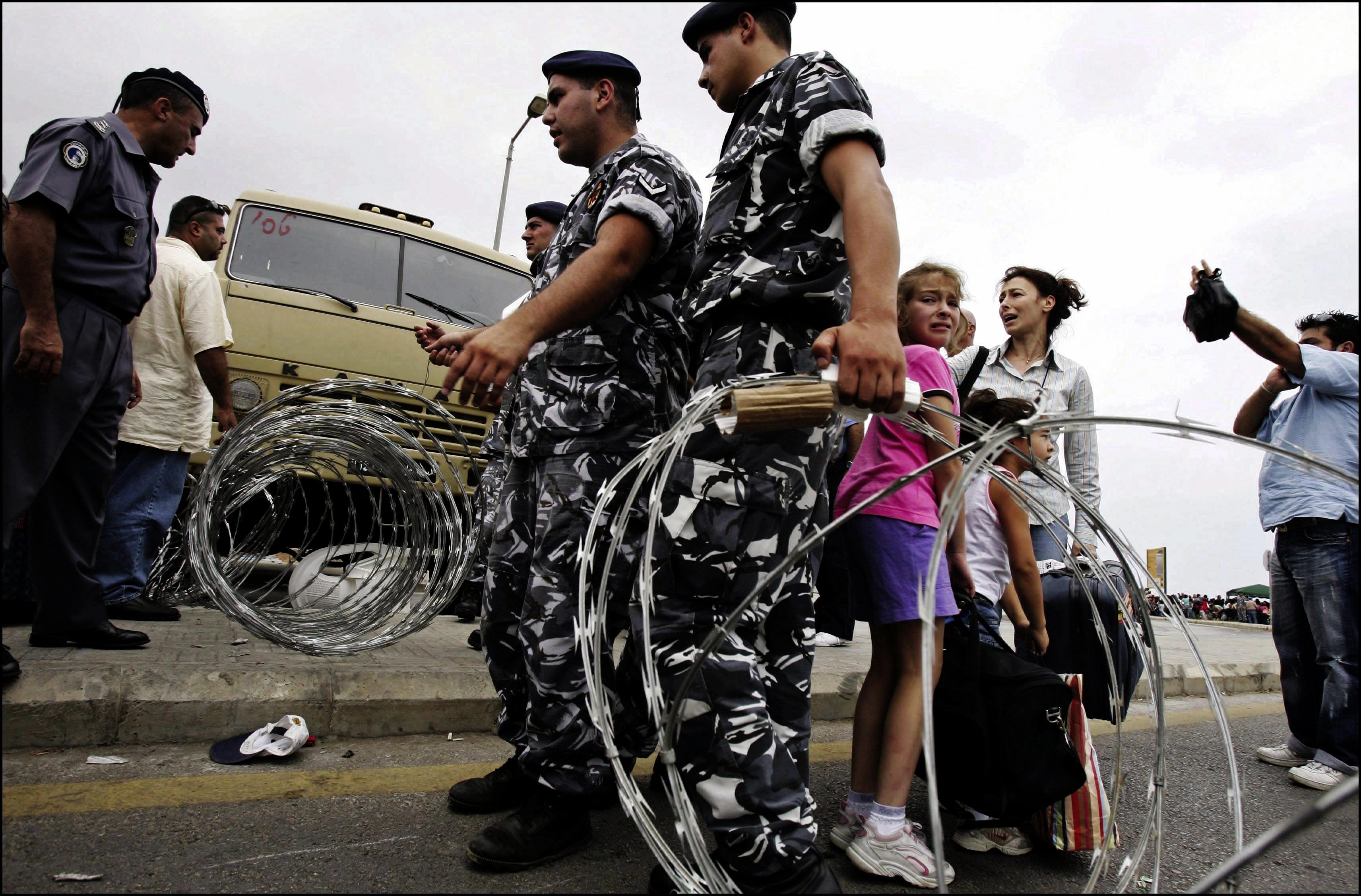 American passport holders at the last Lebanese check point before boarding on navy ships.