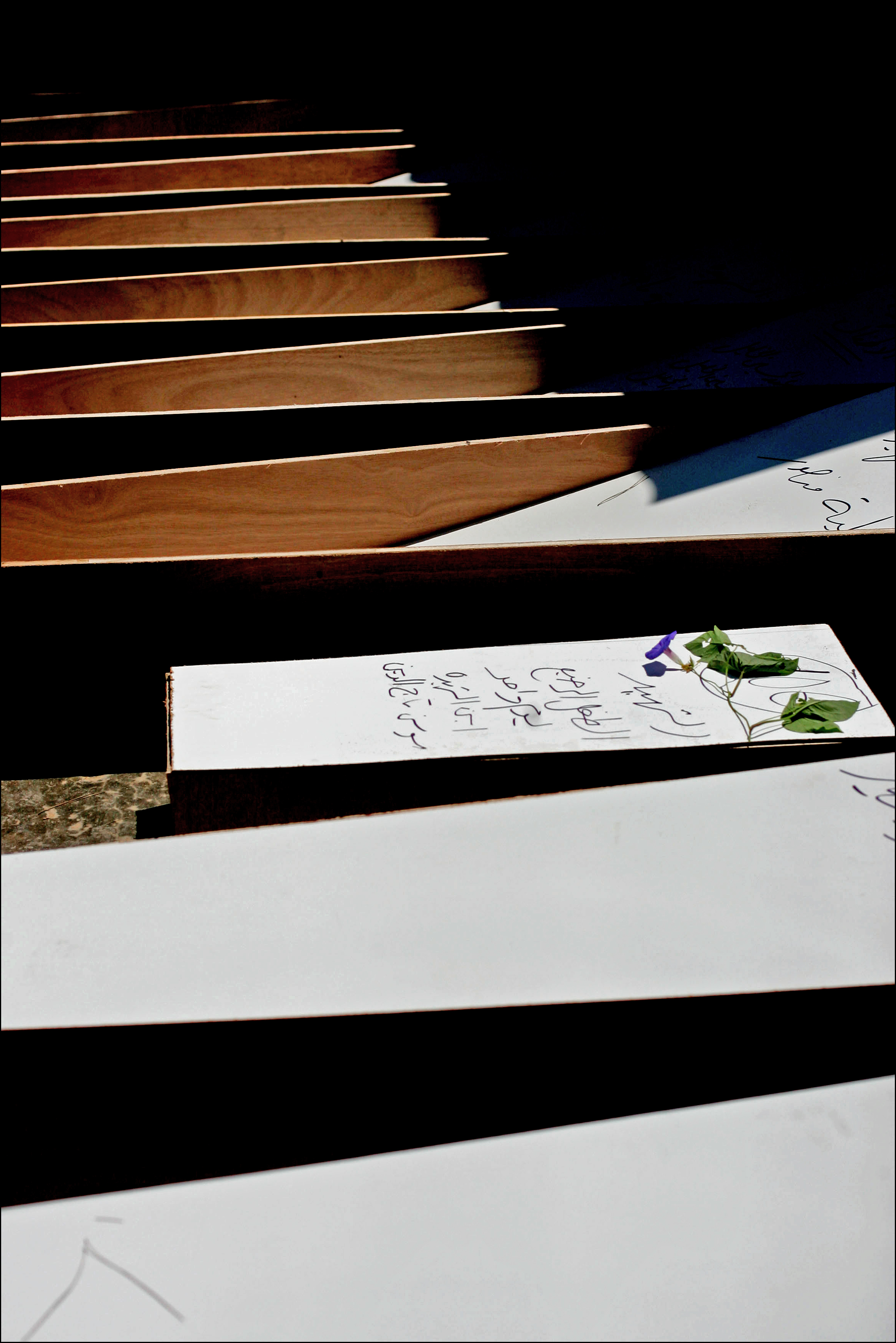 Decorated with a few flowers, the smallest of the 31 simple plywood coffins, center, made to contain one-day-old girl Sawsan Tajeldin, can be seen during the preparation for a mass burial of Lebanese victims at the southern port city of Tyre, Lebanon Saturday July 29, 2006. Tajeldin was killed along with her mother , when the car they were fleeing from the nearby village of Bazouriyeh was hit by an Israeli warplane missile strike. With a few mourners at hand, 31 victims of Israel’s two-week long bombardment were buried in a mass grave in this Lebanese city -
