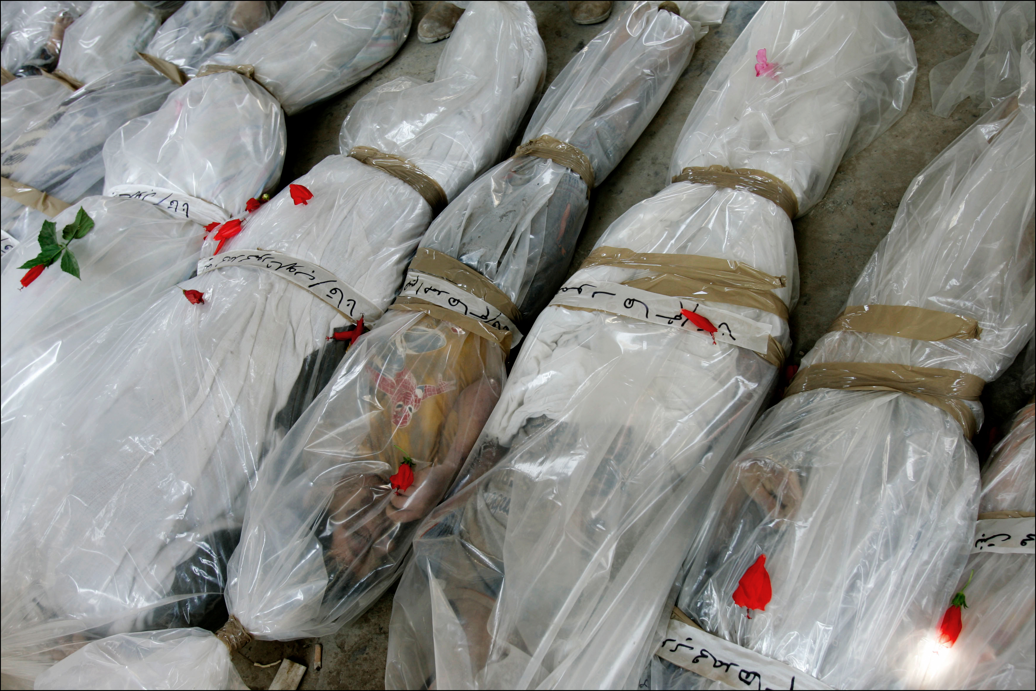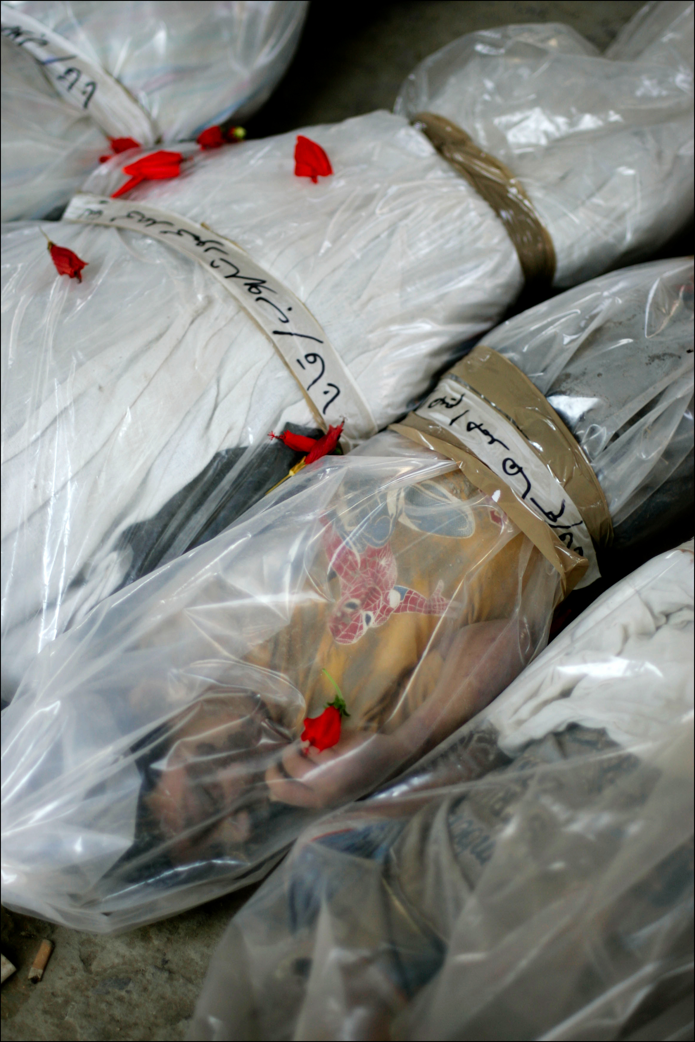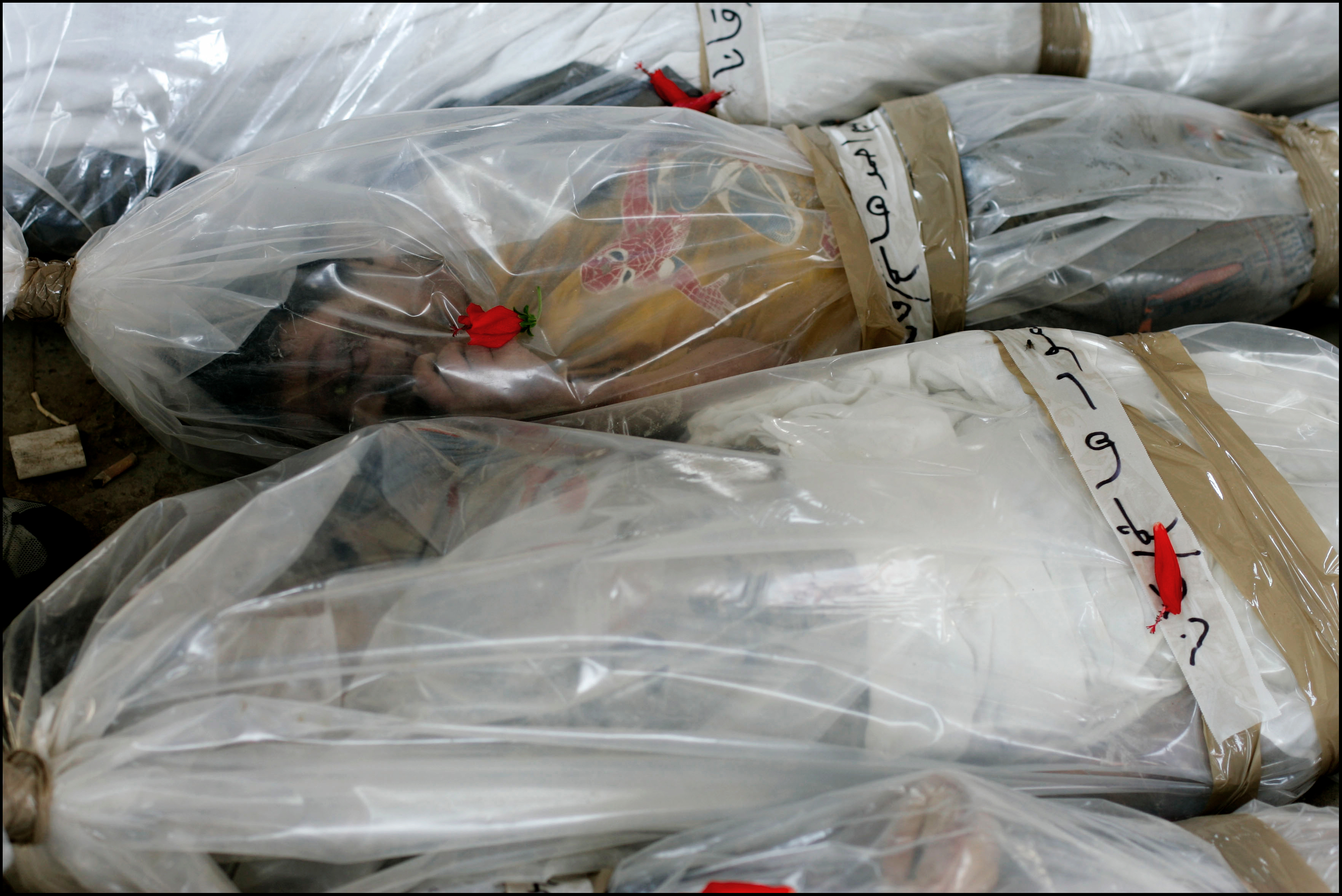 Corpses of some of the 50 civilians , mainly children, killed by israeli shelter bomb strike.