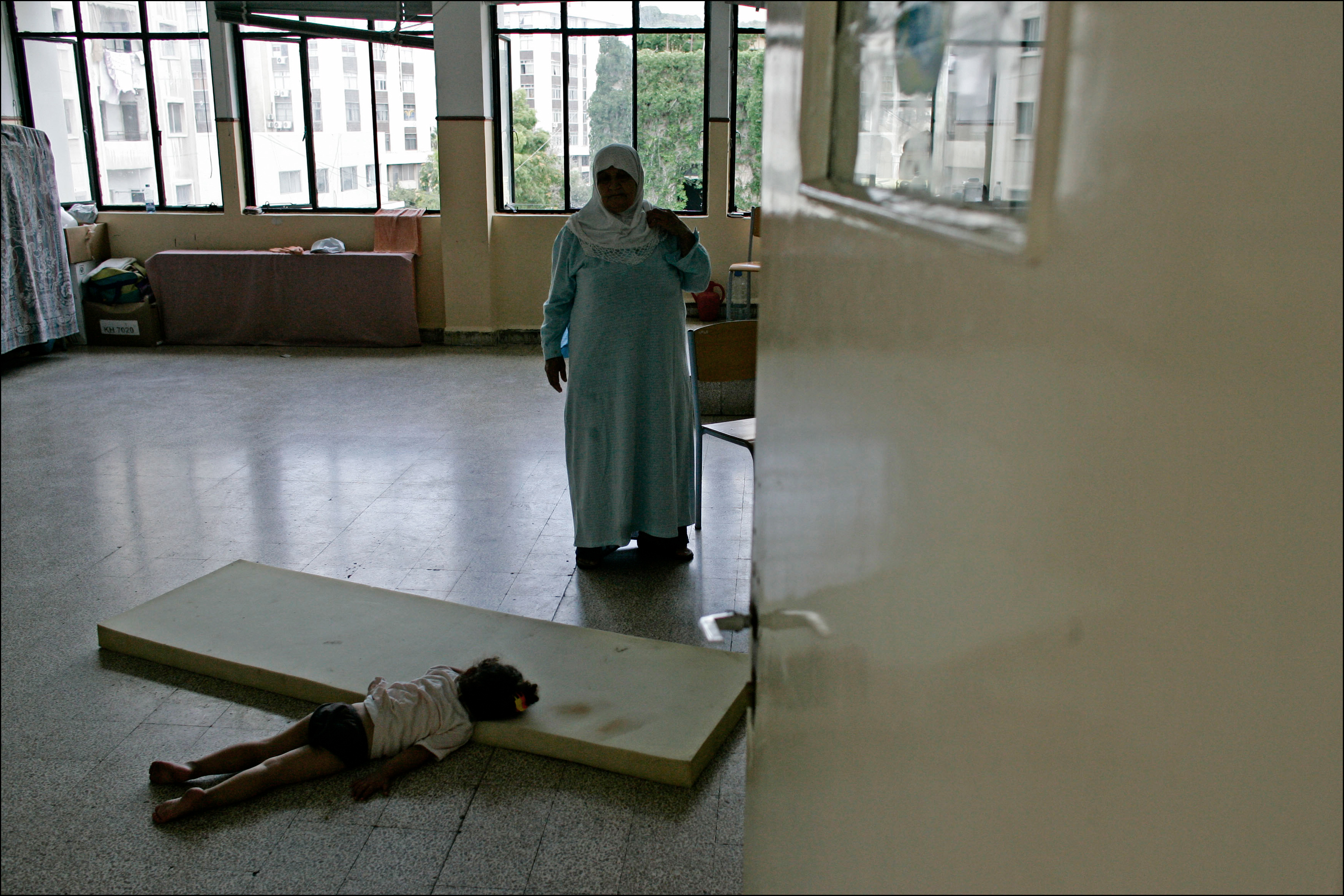 Lebanese refugees try to maintain a semblance of normality in a girl’s school in Sidon after fleeing from their homes and villages in soutehrn Lebanon. 1400 refugees are housed and provided with food in this school supported by the Hariri foundation. One month into the war between Israel and Lebanon, one million Lebanese civilians, a quarter of the country’s population, are displaced. Many find refuge in schools, parks, or other people’s homes in areas perceived as safe.