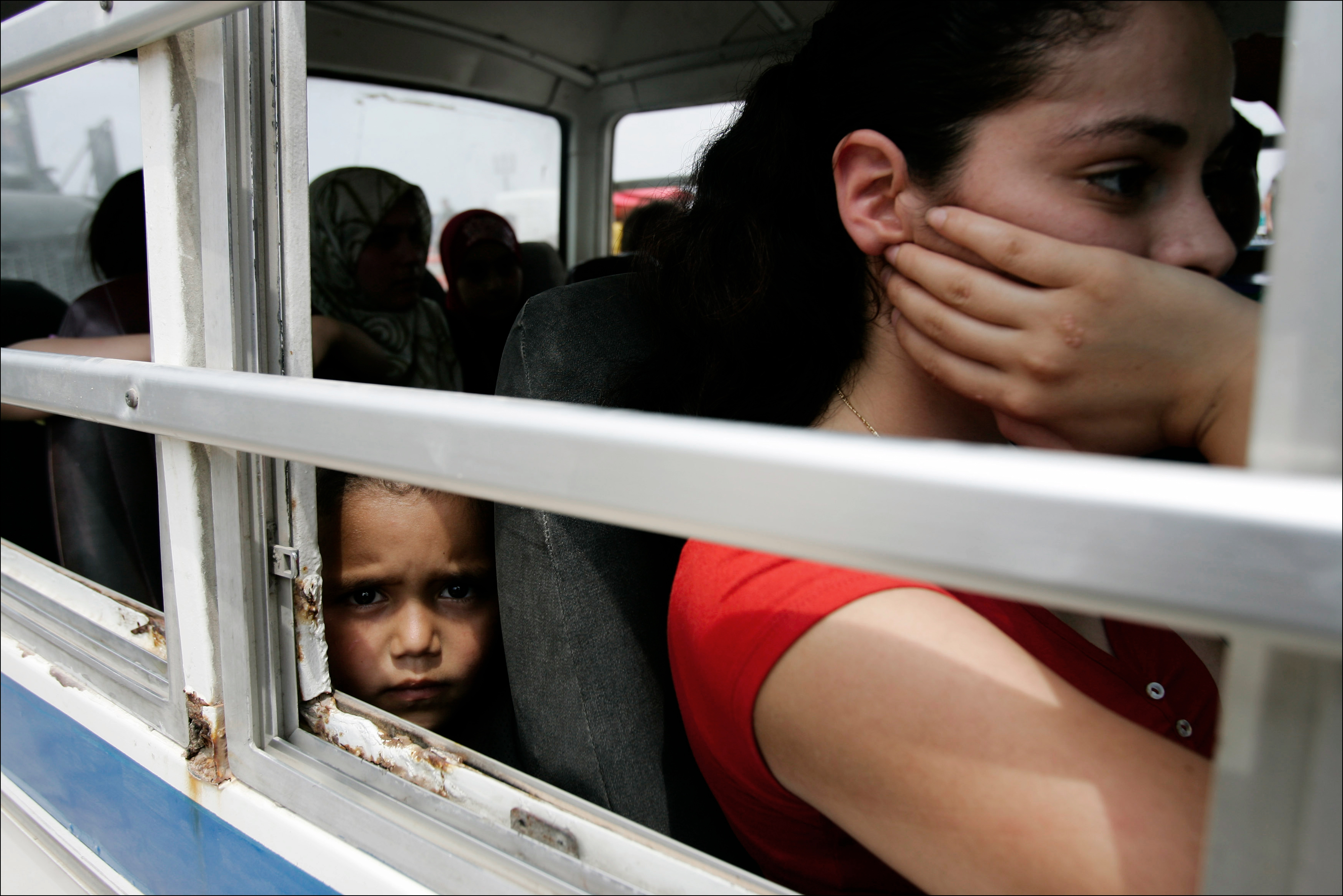 Lebanese refugees from southern Lebanon arrive at the Tyres port to be evacuated to Cyprus in a ship rented by Germany, July 24, 2006. -
