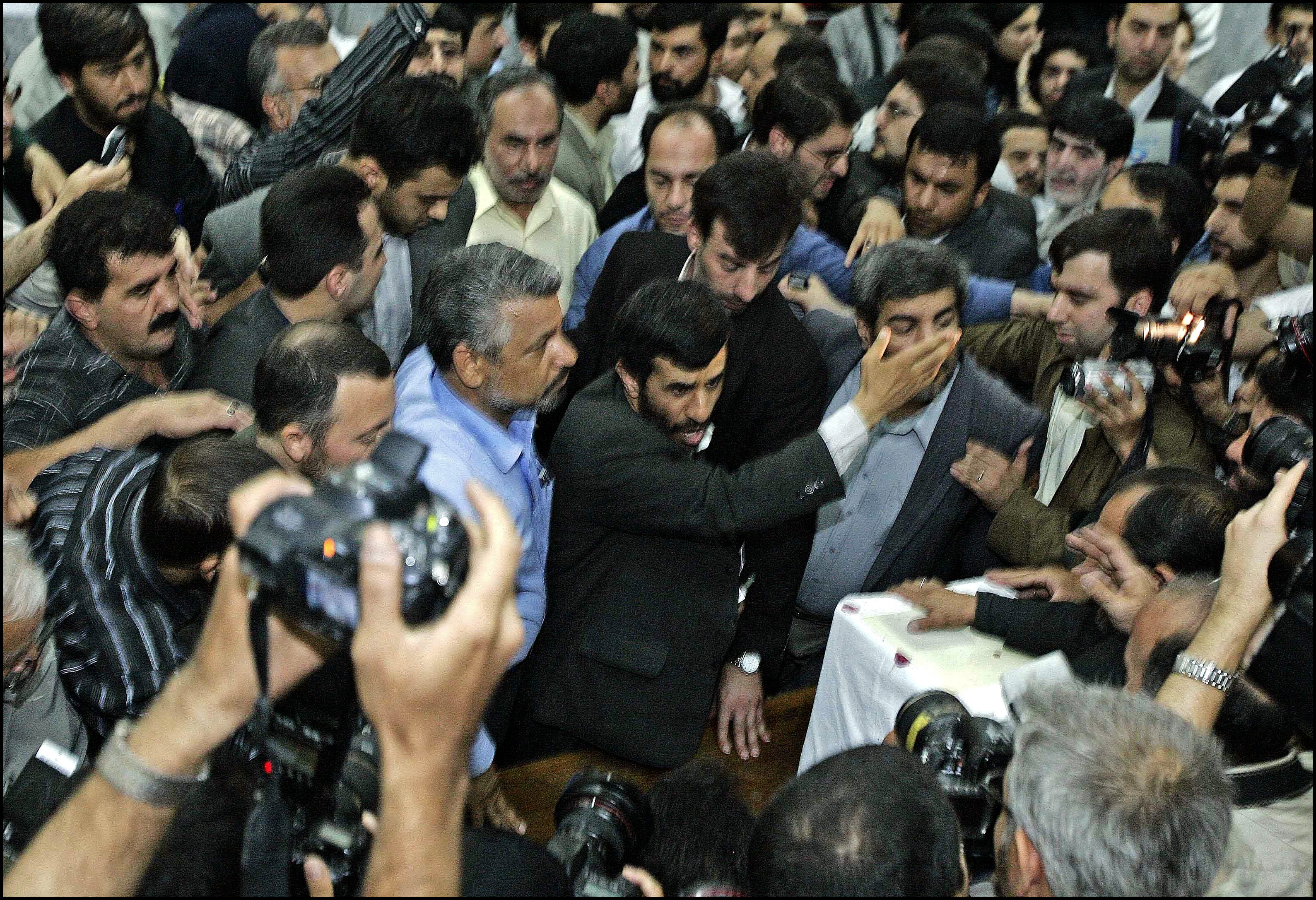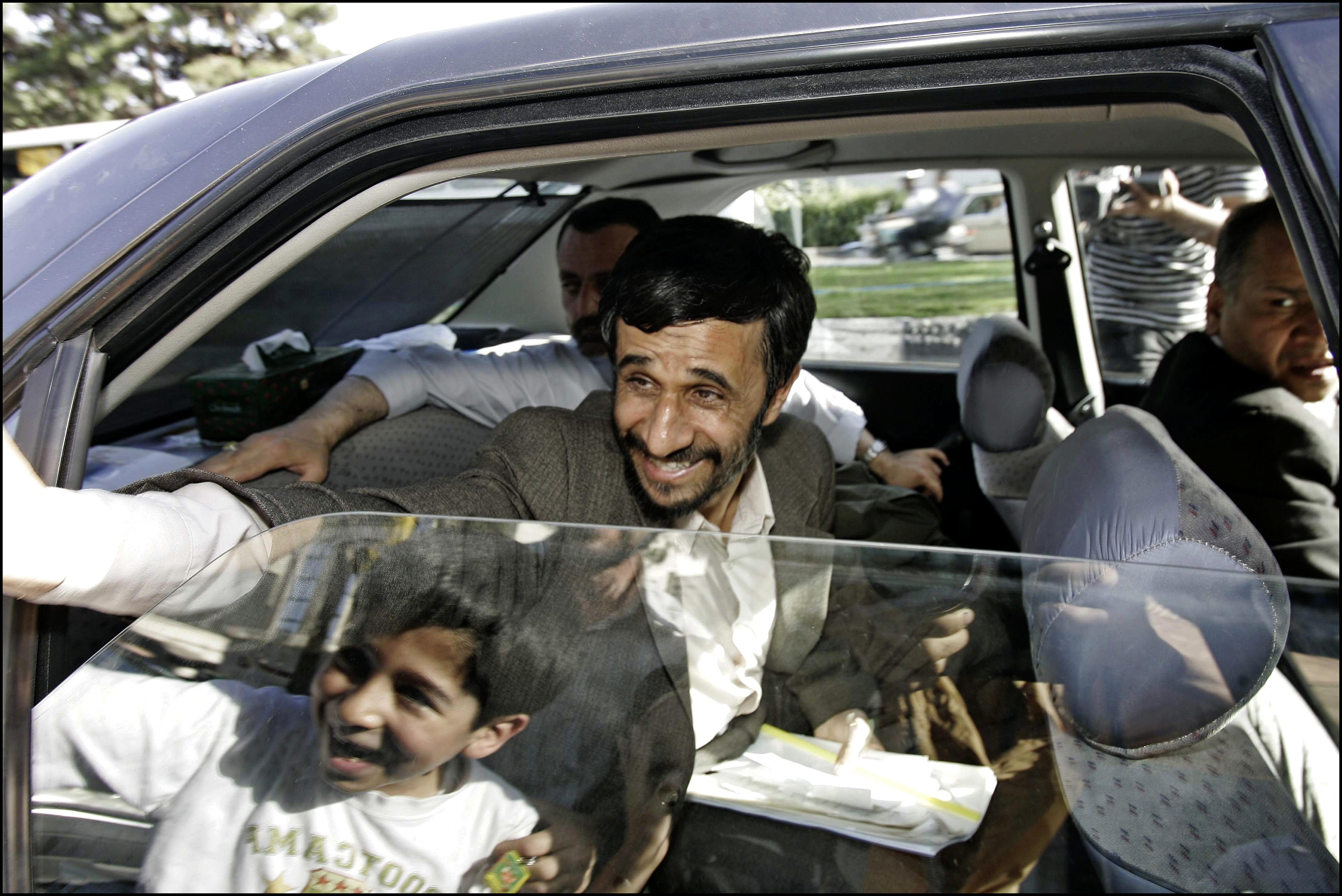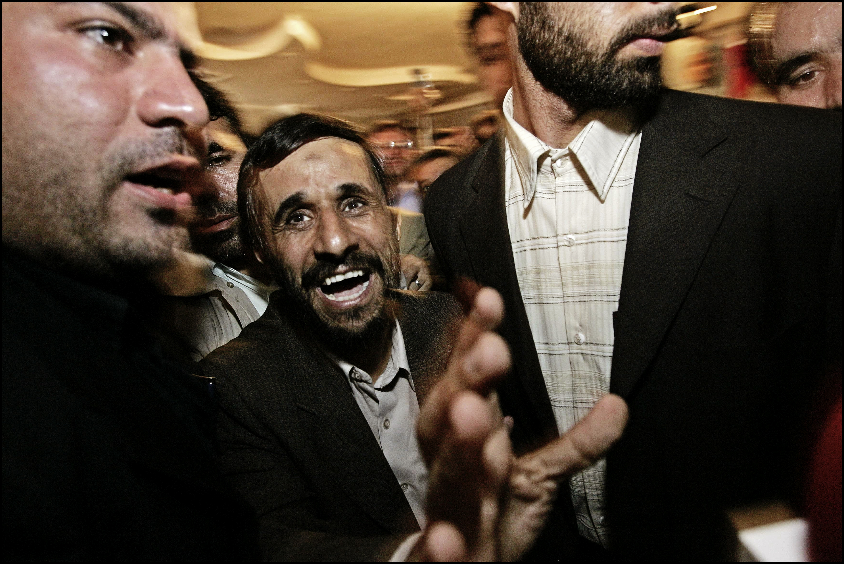 • Mahmoud Ahmadinejad, the ultra conservative candidate who is running for second round in the Iranian Presidential Election had just cast his ballot, in East tehran. Photo by Frederic Lafargue/GAMMA