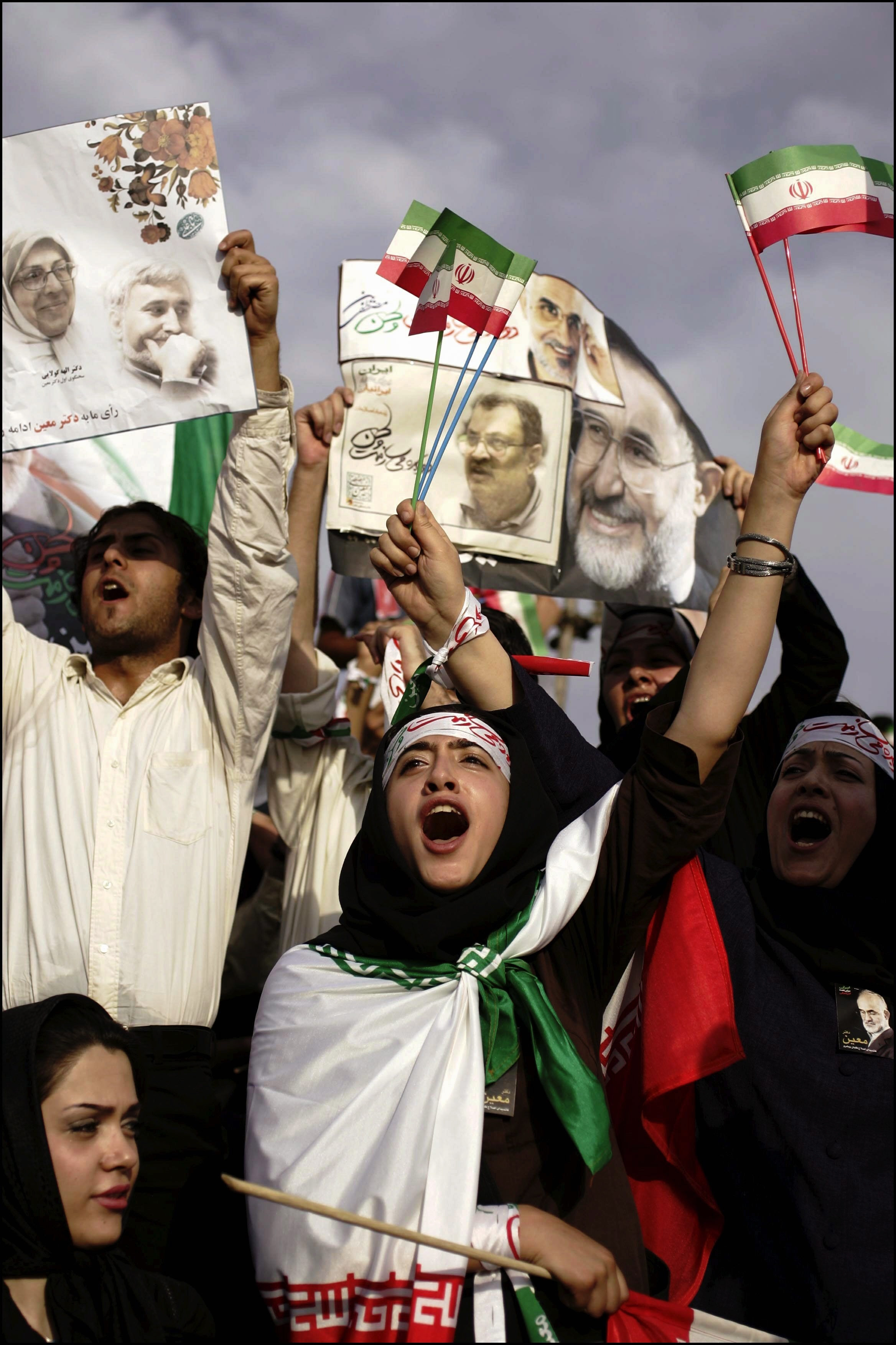 • Presidential candidate and outspoken Iranian reformist Mostafa Moin rally at the Tehran University stadium.