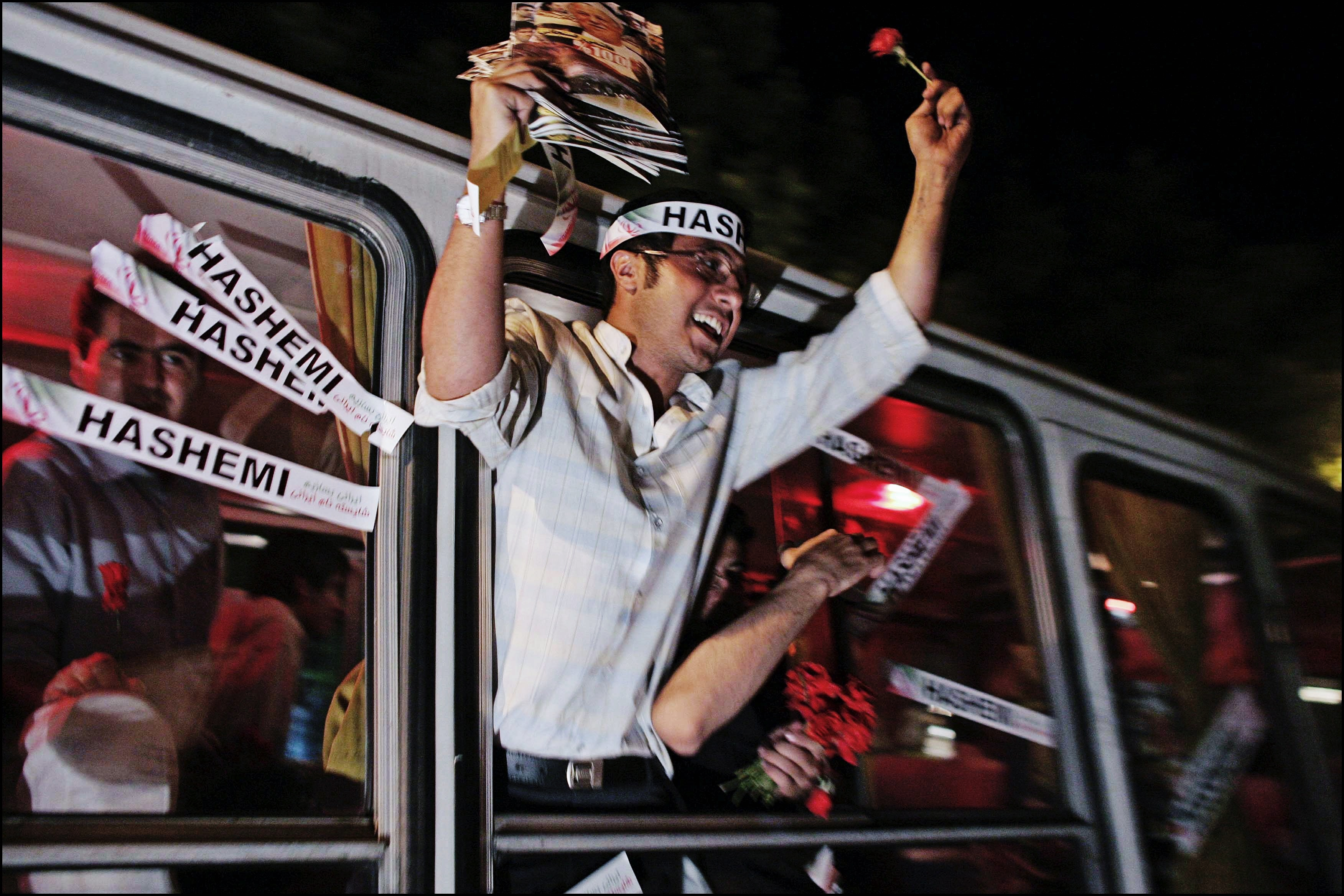 • Supporters of the mayor of Tehran celebrate his victory in Normak district where the presidential candidate lives.