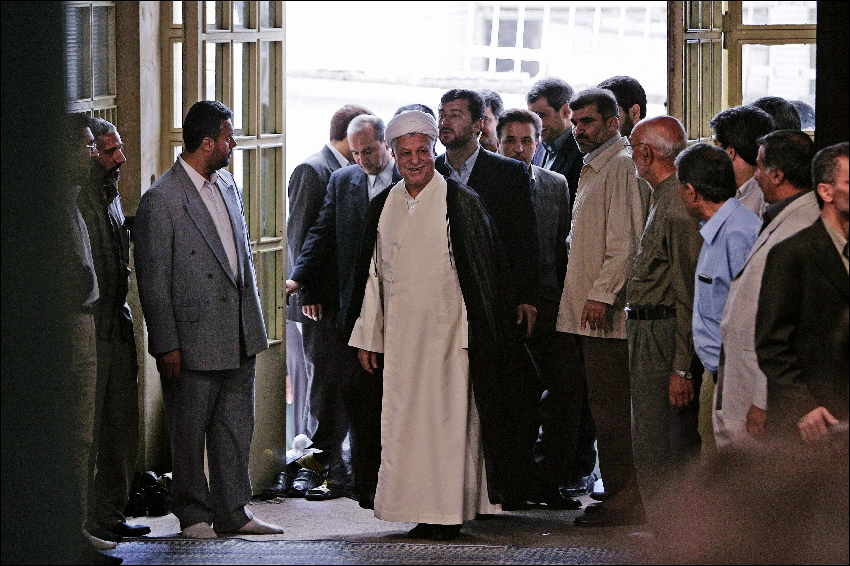 • Former Iranian president, Hashemi Rafsanjani, arriving to vote for the presidential elections in wich he is the front-runner candidate, at Jamaran mosque.