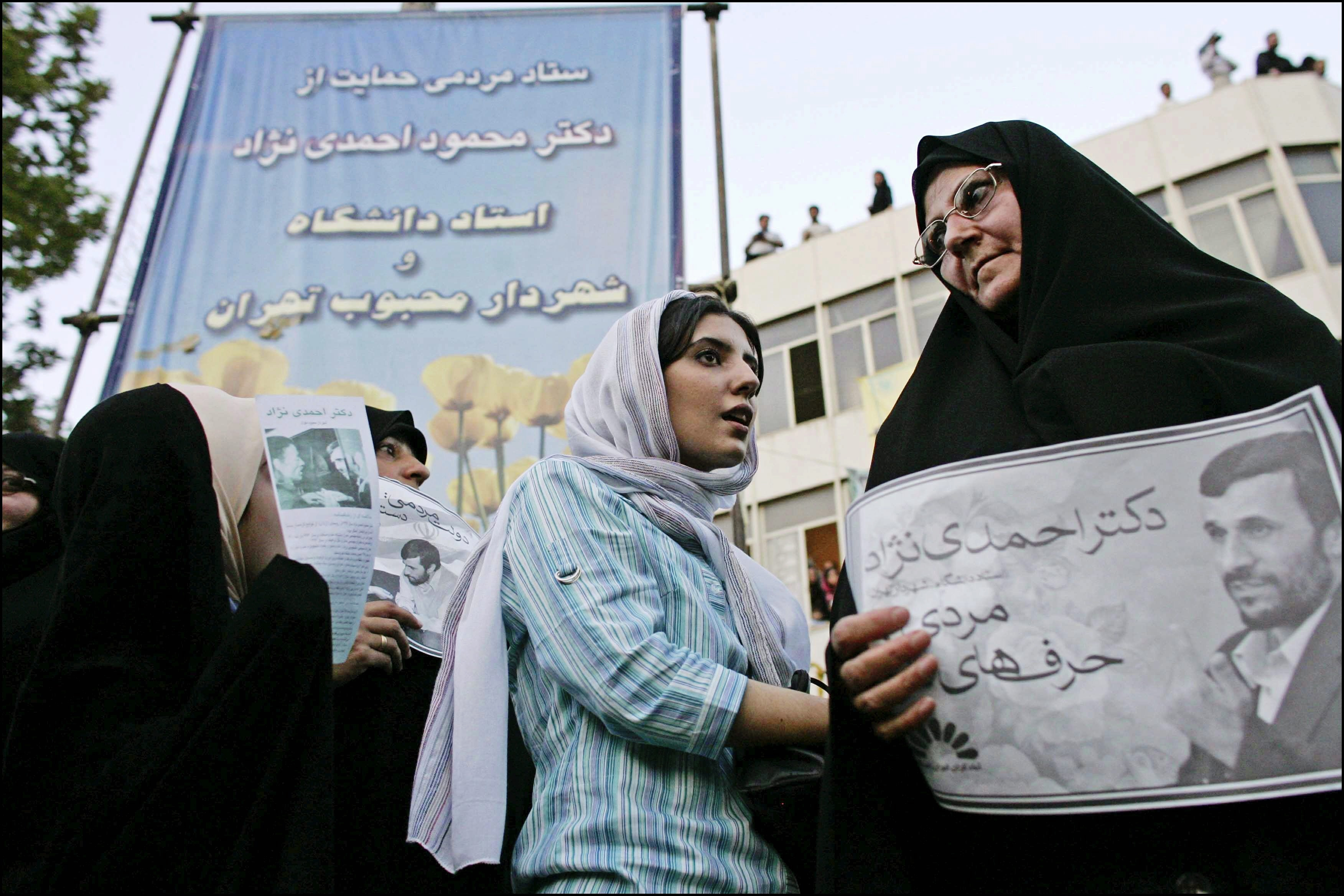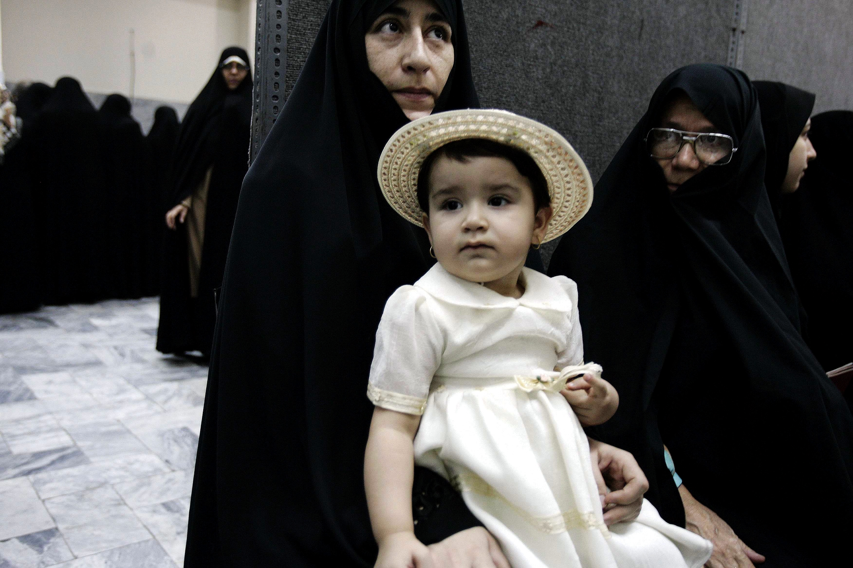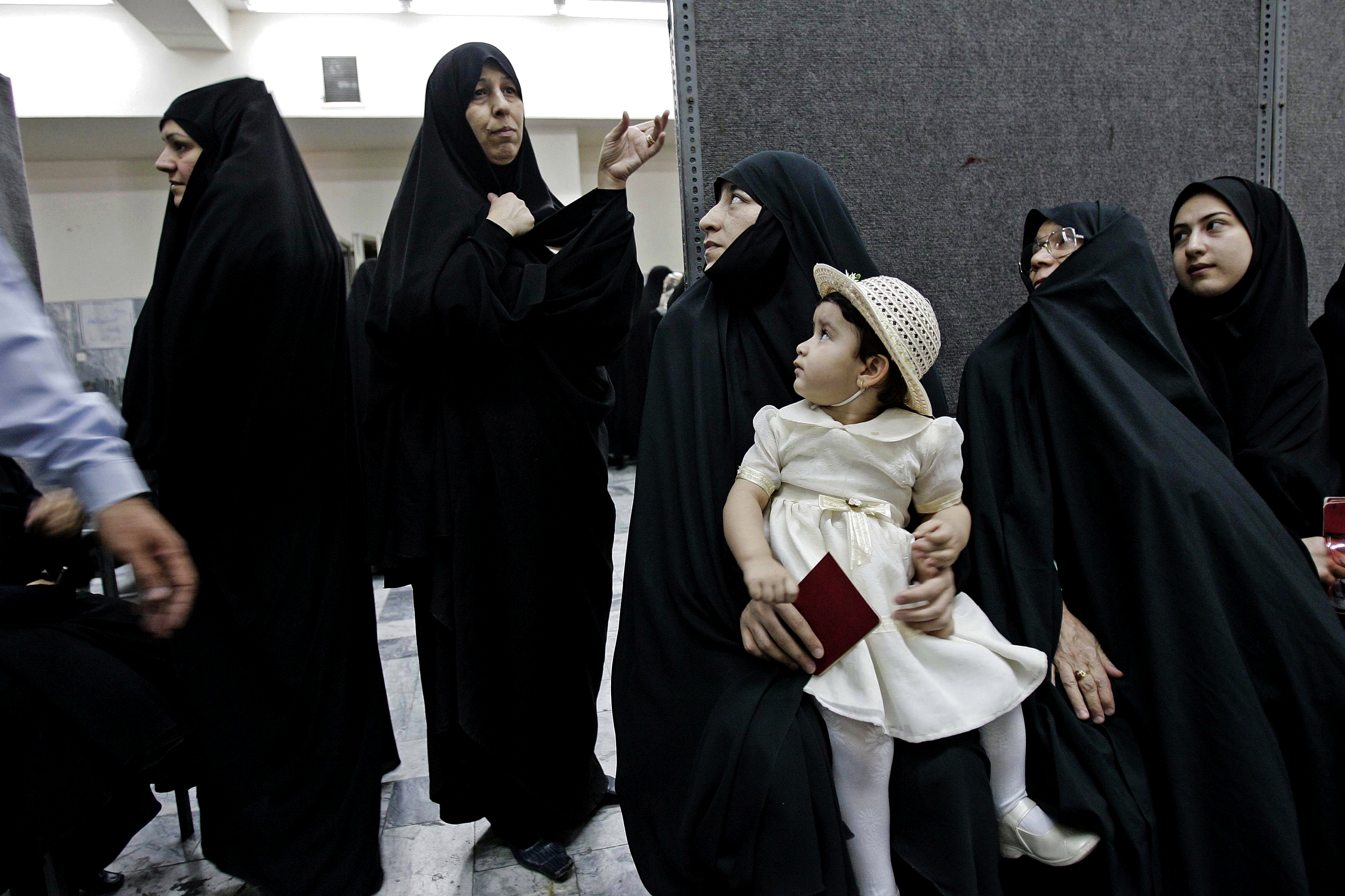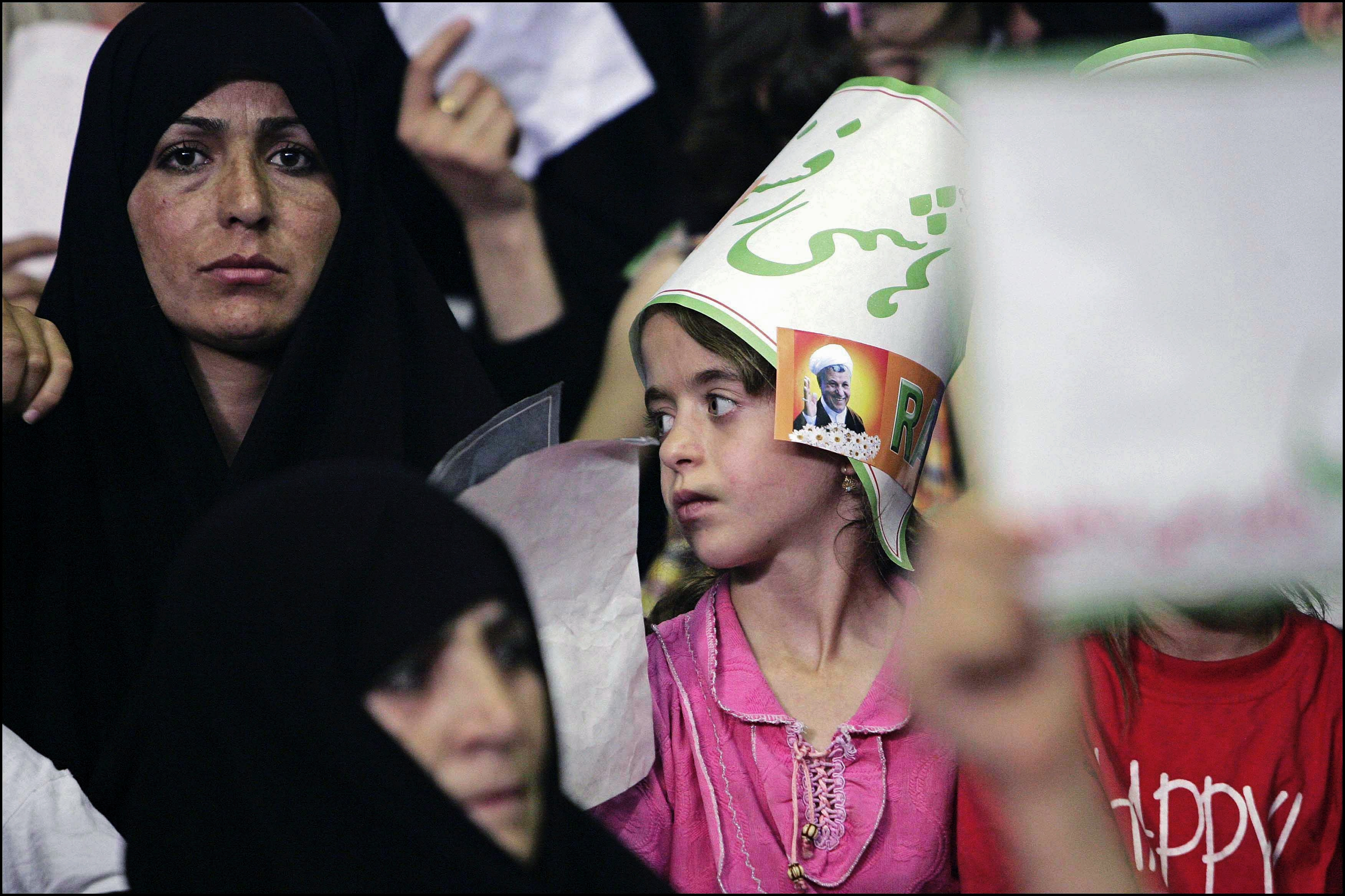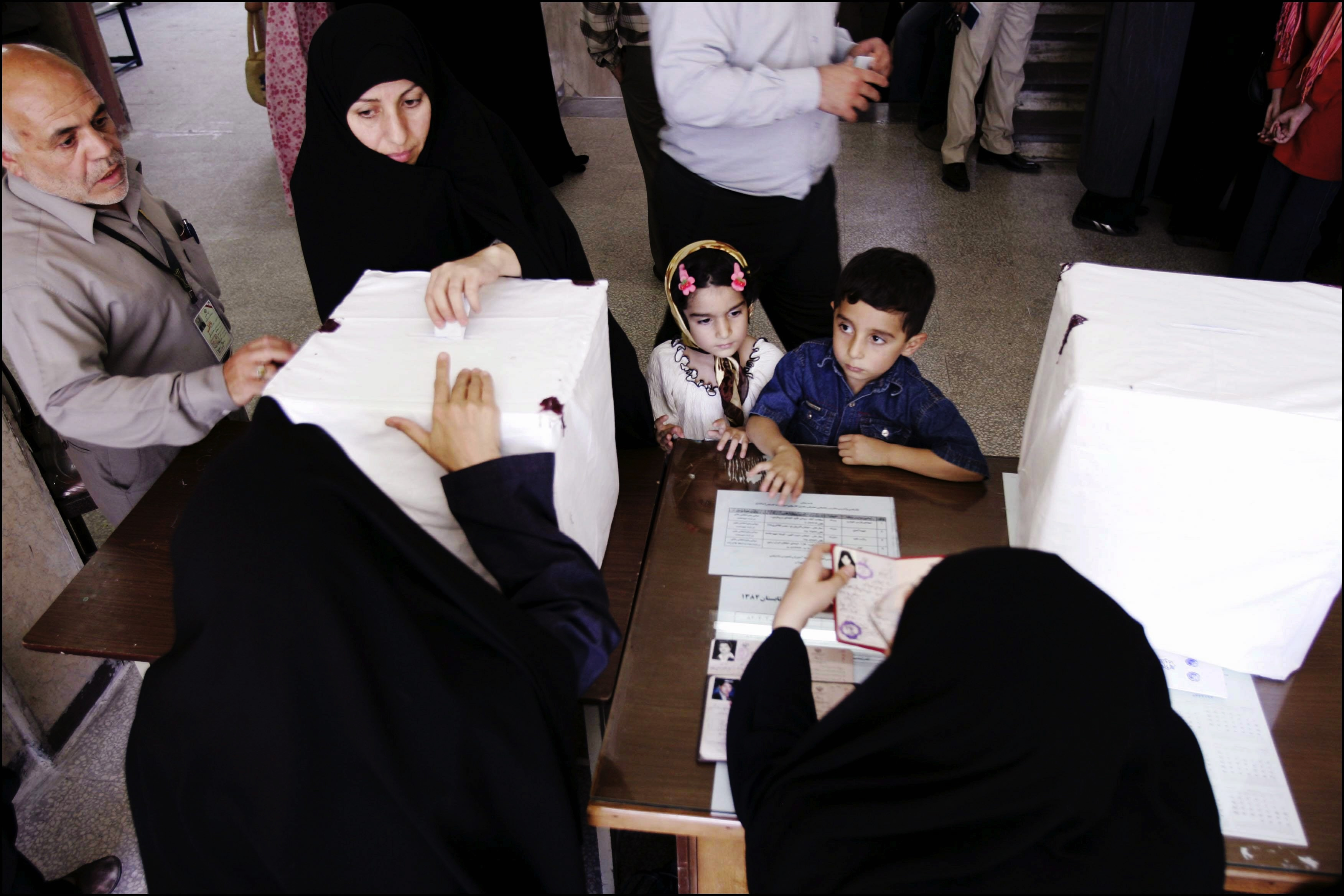 • Women and children at the polling station where Mahmoud Ahmadinejad, the ultra conservative candidate who is running for second round in the Iranian Presidential Election had just cast his ballot, in East tehran. Photo by Frederic Lafargue/GAMMA